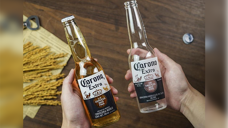 You first introduce an empty glass bottle (corona), a paper bag and an opener as a "magic wand". After some jokes that is naturally built into the routine, the bottle is magically refilled in a completely sealed state! The beer can immediately be handed out as your spectators enjoy the rest of your show drinking it. With the cleverly-refined routine, the spectator can now touch and even hear the empty bottle before the effect. This truly added a lot of depths to the illusion and drastically increase the deception.