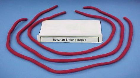 The performer displays three pieces of rope which are knotted into three separate rope rings. The rings are counted and then magically caused to link together!