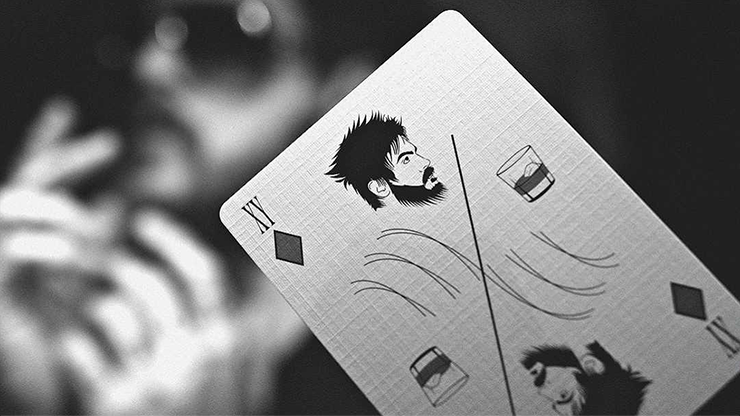 Based on a minimalistic custom design, and innovative pips and colors (transition from red to gold), they best represent a part of Cristian's persona and style. The court cards are customized as well and have been transformed into some close people and friends of the creator (including Jeremy Griffith, Ádám Veller, Angelo Pangalos and Daniel Madison).