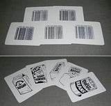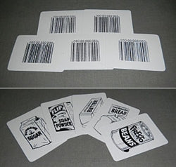 The Magician shows 5 cards with pictures of five popular grocery items. On the reverse of the cards, there is a barcode, but all these barcodes are identical. The cards are mixed, and a spectator asked to pick any card, while the magician looks away.
